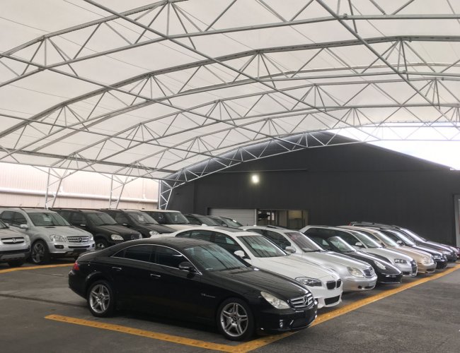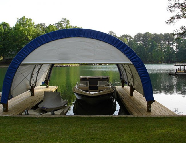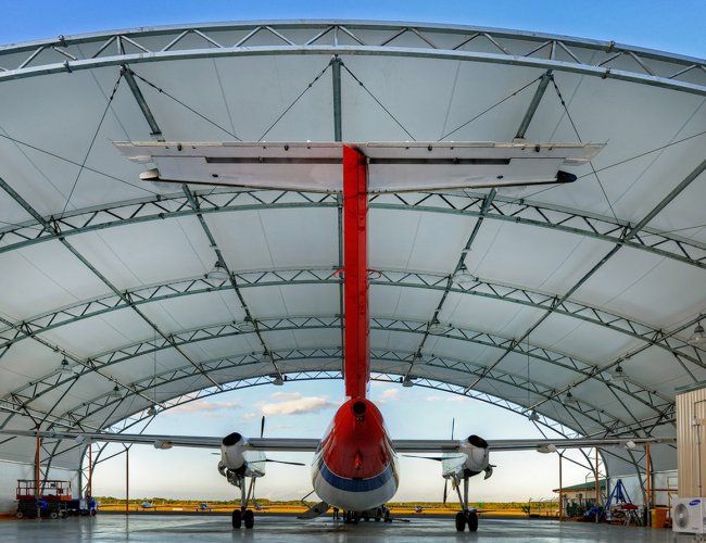 Каркасно-тентовые сооружения используются как крытые автостоянки и автосалоны, ангары для хранения самолетов и вертолетов, ангары для железнодорожного транспорта, укрытия для яхт и катеров.
